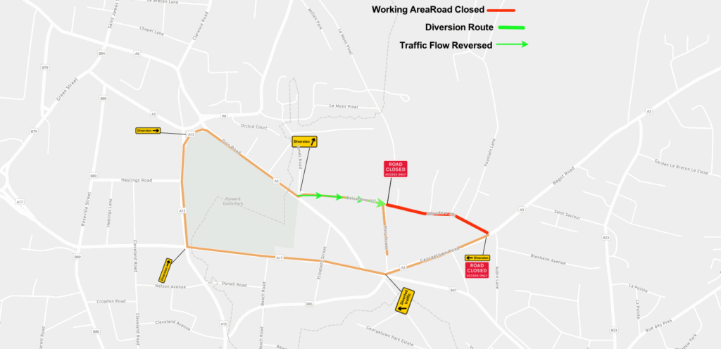 - From Don Road, traffic will be diverted up Belvedere and then down Mary Street.